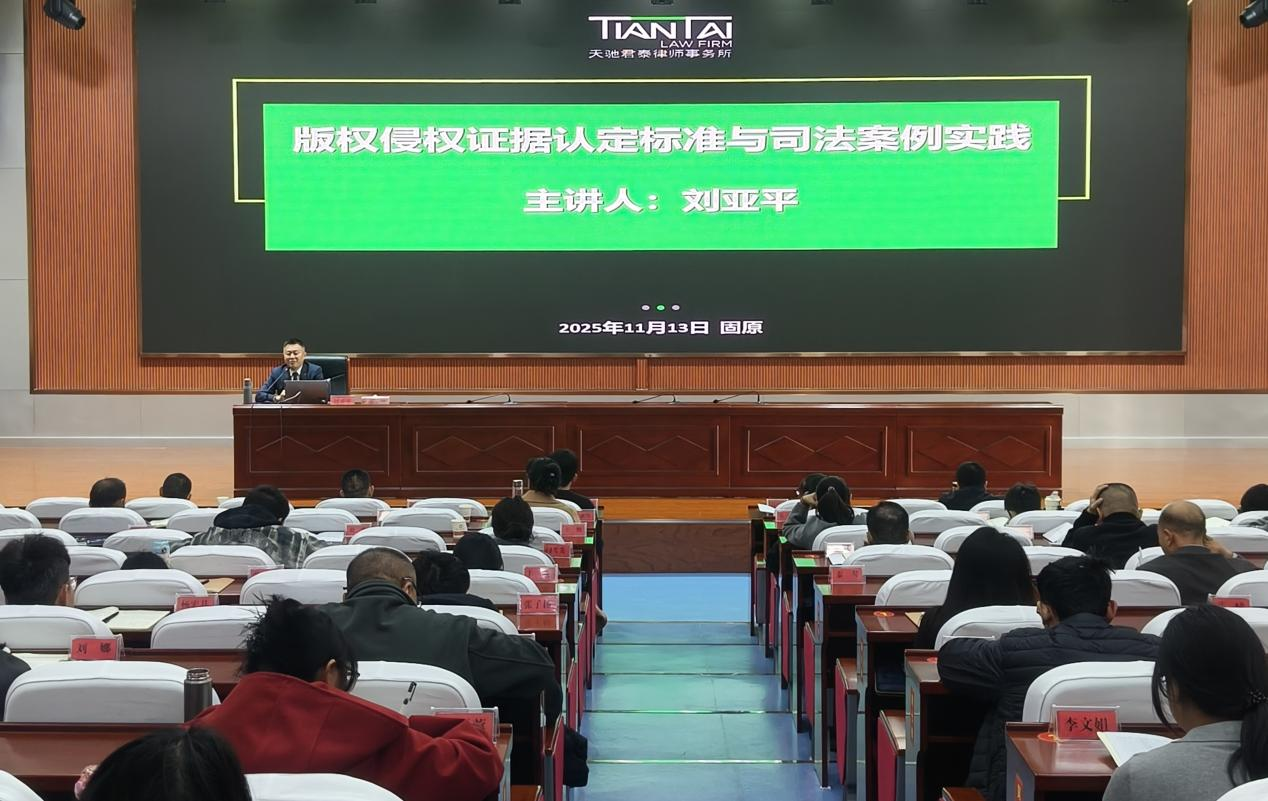 为深入学习贯彻习近平文化思想特别是习近平总书记关于意识形态工作的重要论述,全面贯彻落实中央新修订的《党委(党组)意识形态工作责任制实施办法》,进一步提升做好意识形态工作的能力和水平,市委组织部、宣传部、党校于11月10日—11月14日在固原市委党校报告厅联合举办2025年全市党政干部意识形态工作专题研讨班,北京天驰君泰(银川)律师事务所刘亚平律师应邀为其作关于《版权侵权证据认定标准与司法案例实践》的专题辅导。